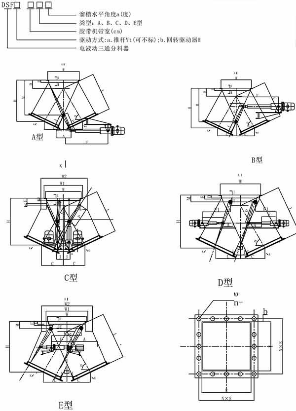 DCSF型電液動(dòng)船式三通分料器,采用船式溜槽結(jié)構(gòu),使煤流更加暢通;進(jìn)煤有“漏斗”狀護(hù)架,使煤流直接進(jìn)入船體內(nèi)。由于采用拼裝結(jié)構(gòu),維修亦比較方便。