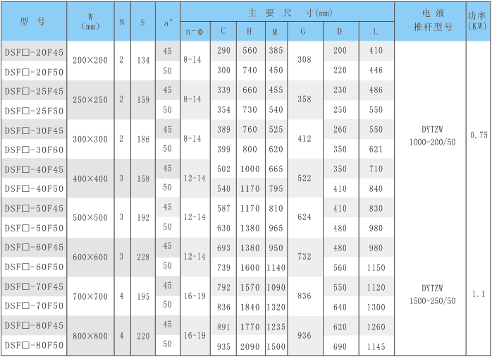外形尺寸及技術(shù)參數(shù)表(F型)