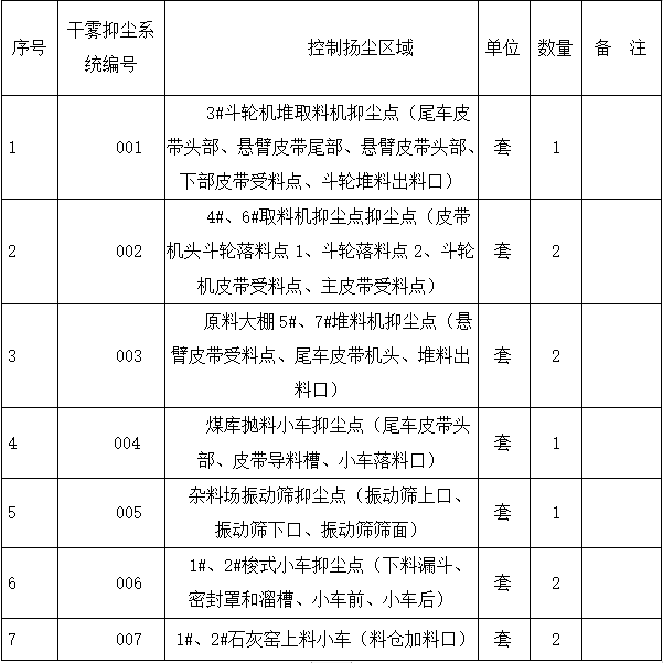 東方特鋼燒結(jié)廠環(huán)保升級(jí)改造原料大棚斗輪機(jī)堆取料機(jī)、煤庫拋料小車、雜料場振動(dòng)篩、梭式小車和石灰窯上料小車粉塵治理微米級(jí)干霧抑塵裝置的設(shè)計(jì)、結(jié)構(gòu)、功能、性能、制造、供貨等方面的技術(shù)要求。本期項(xiàng)目共涉及11套微米級(jí)干霧抑塵系統(tǒng)。包括干霧抑塵裝置、控制系統(tǒng)等的設(shè)計(jì)、制作、供貨、安裝、調(diào)試及人員培訓(xùn)等。